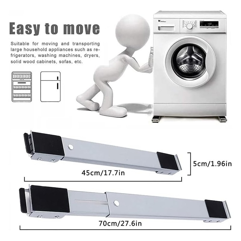 Découvrez la Generic Base de machine à laver avec frein, base mobile réglable, base rétractable pour machine à laver et sèche-linge. Conçue en métal durable, elle offre une stabilité exceptionnelle tout en facilitant le déplacement de vos appareils lourds. Avec ses dimensions ajustables et ses pieds antidérapants, cette base est idéale pour un accès facile et un rangement optimisé.