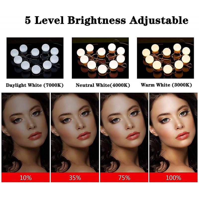 Le set comprend 10 ampoules LED qui émettent une illumination vive mais douce, imitant l'éclairage glamour d'Hollywood. Vous pouvez choisir parmi trois températures de couleur distinctes : blanc froid pour la précision, blanc chaud pour un éclat naturel, et blanc doux pour créer une atmosphère chaleureuse. Cette polyvalence vous permet de personnaliser votre éclairage en fonction de vos besoins et préférences.