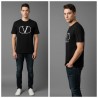 Un T-shirt noir élégant et stylé avec un design de logo audacieux.