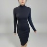 Cette robe noire élégante présente une silhouette ajustée et des manches longues, la rendant parfaite pour des événements formels et décontractés. Fabriquée à partir de matériaux de haute qualité, elle offre confort et style, vous assurant de toujours avoir fière allure que ce soit au bureau ou lors d'une soirée.