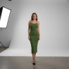 Robe Midi Élegante Vert Olive à Côtes