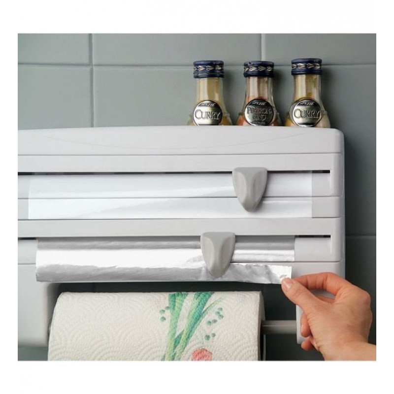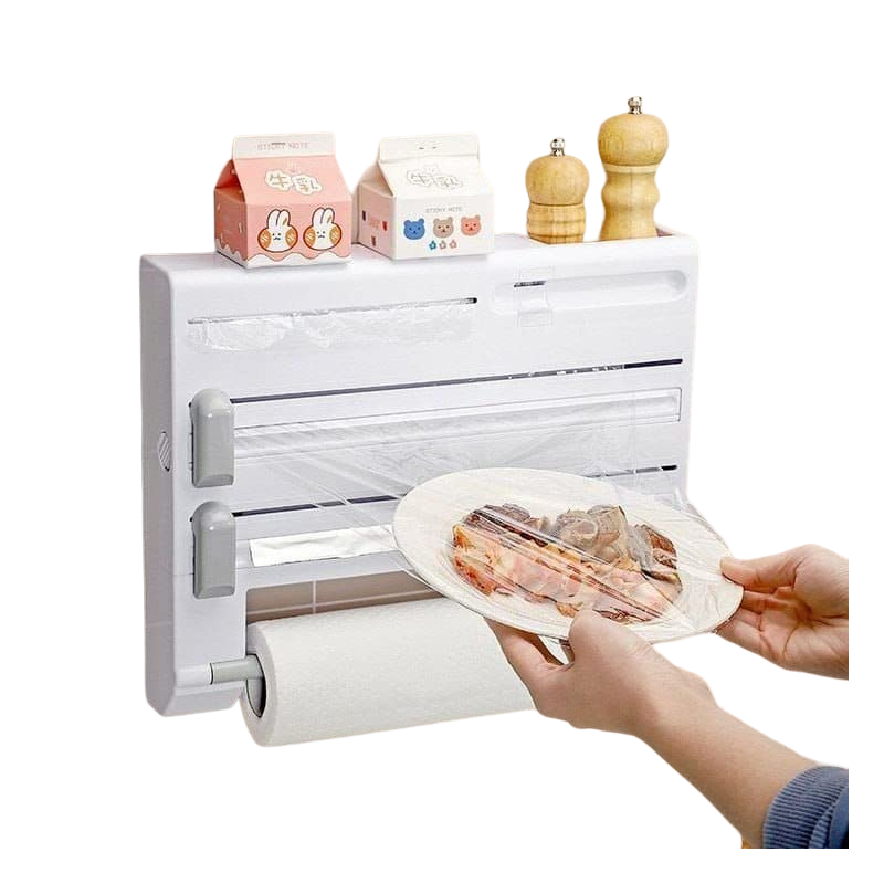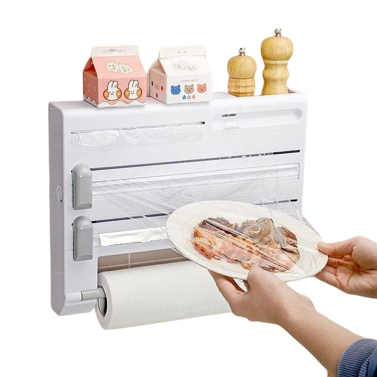 Découvrez le Film alimentaire de cuisine support de rangement de bouteilles de Sauce, un accessoire indispensable pour toute cuisine moderne. Conçu en matériau ABS durable, ce porte-film allie fonctionnalité et esthétique contemporaine, s'intégrant parfaitement dans votre espace culinaire. Ce support multifonctionnel est équipé d'un distributeur de film plastique, permettant un accès facile et rapide à votre film alimentaire. Grâce à son cutter intégré, vous pouvez découper le film avec précision, garantissant des bords nets pour une utilisation optimale. La section inférieure sert également de porte-rouleau pour serviettes en papier, rendant cet accessoire encore plus pratique lors des préparations culinaires. L'une des caractéristiques les plus attrayantes du Film alimentaire de cuisine support est sa capacité à organiser vos sauces et condiments. Avec trois compartiments astucieux en haut, vous pouvez ranger vos bouteilles d'épices ou sauces préférées tout en ajoutant une touche ludique à votre décor. Les poignées grises sur les côtés facilitent la manipulation du film pendant l'utilisation. Avec ses dimensions compactes (39 x 10 x 24 cm), ce produit optimise l'espace dans les petites cuisines sans compromettre le style. Il peut être fixé au mur ou accroché facilement grâce aux vis et rubans adhésifs fournis, offrant ainsi une solution d'organisation efficace. Simplifiez votre expérience culinaire avec ce Film alimentaire de cuisine support de rangement de bouteilles de Sauce qui combine élégance et praticité. Ne laissez pas le désordre envahir votre plan de travail; optez pour cet accessoire essentiel qui rendra chaque préparation agréable!