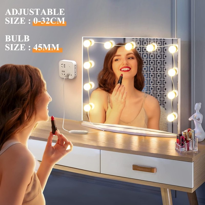 Transformez votre routine beauté avec Winzwon Lumière de Miroir. Cette lumière de coiffeuse LED est dotée de 10 ampoules Hollywood dimmables, offrant trois températures de couleur réglables : lumière du jour, naturelle et chaude. Parfaite pour toute occasion, elle fournit une illumination douce qui améliore la visibilité sans fatiguer vos yeux. Élevez votre expérience d'application de maquillage avec cette solution d'éclairage de miroir cosmétique essentielle.