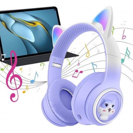 Casque Chat | Écouteurs d'oreille Chat sans Fil Brillants dégradés | Casque Confortable Mignon, Casque à Sangle tête réglable 120 MAD