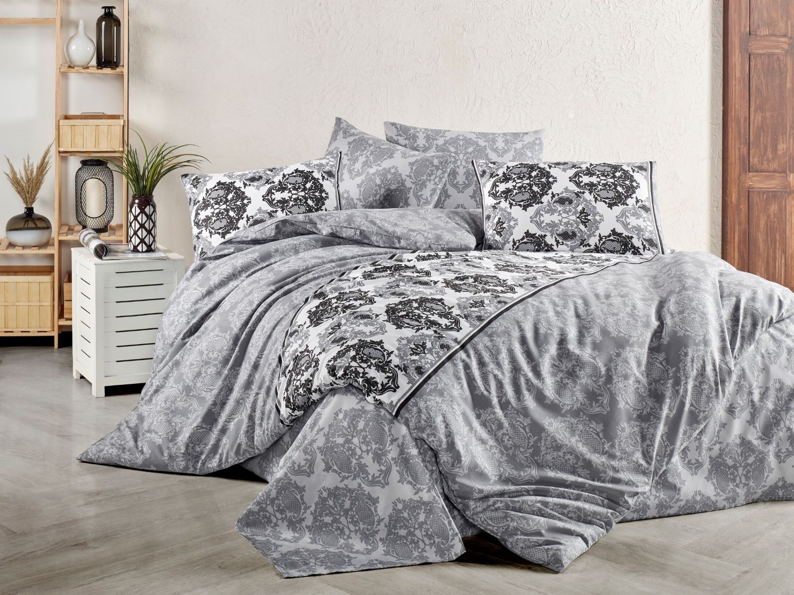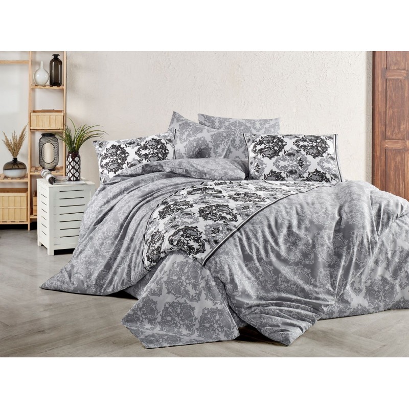 Transformez votre chambre en un sanctuaire de style et de confort avec notre magnifique ensemble de literie. Cette collection élégante est conçue pour élever votre espace, présentant une esthétique sophistiquée qui s'harmonise parfaitement avec tout décor. Les motifs damassés complexes dans des nuances variées de gris et de noir créent un impact visuel saisissant, en faisant le choix parfait pour ceux qui apprécient le luxe. L'ensemble de literie comprend des composants essentiels : une housse de couette, un drap-housse et plusieurs taies d'oreiller adaptées aux oreillers standard et plus grands. Chaque pièce est fabriquée à partir d'un mélange de tissus doux et lisses en polyester ou en coton, garantissant une durabilité durable tout en offrant une sensation accueillante contre votre peau. La texture moelleuse améliore le confort global de votre expérience de sommeil. Ce versatile ensemble de literie dispose d'une housse de couette réversible, un côté présente des motifs noirs audacieux sur un fond blanc éclatant, tandis que l'autre met en avant des motifs gris subtils. Ce design dual vous permet de changer facilement l'apparence de votre chambre selon votre humeur ou la saison. La palette de couleurs—allant d'un argent clair à un charbon profond—associée à des accents blancs éclatants ajoute non seulement de la profondeur mais garantit également que cette literie complète divers styles d'intérieur, du chic contemporain à l'élégance classique. De plus, la bordure coordonnée le long des bords de la couette et des taies d'oreiller améliore son apparence soignée. Prendre soin de cet ensemble de literie magnifique est simple, il est probablement lavable en machine pour un entretien facile. Idéal pour les chambres principales ou les chambres d'amis, cette collection offre à la fois style et praticité sans compromettre le confort. Élevez votre décoration de chambre aujourd'hui avec notre superbe ensemble de literie !