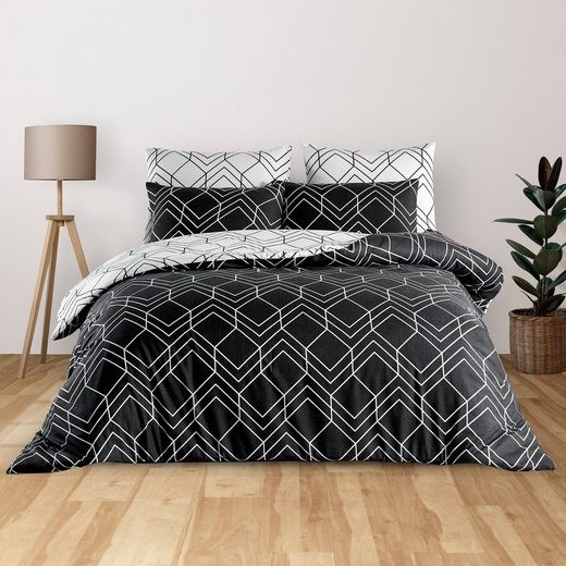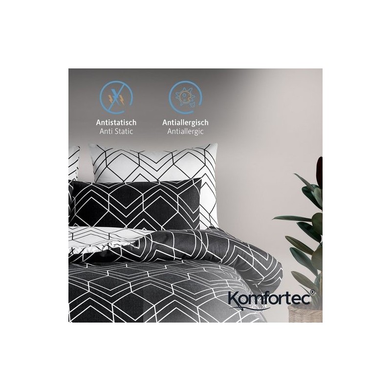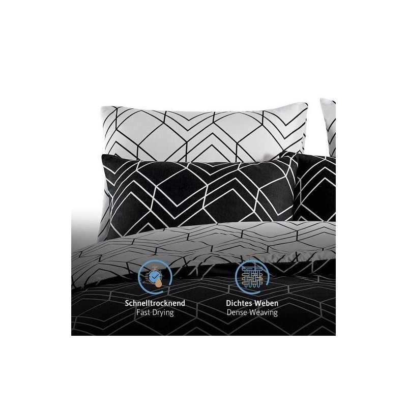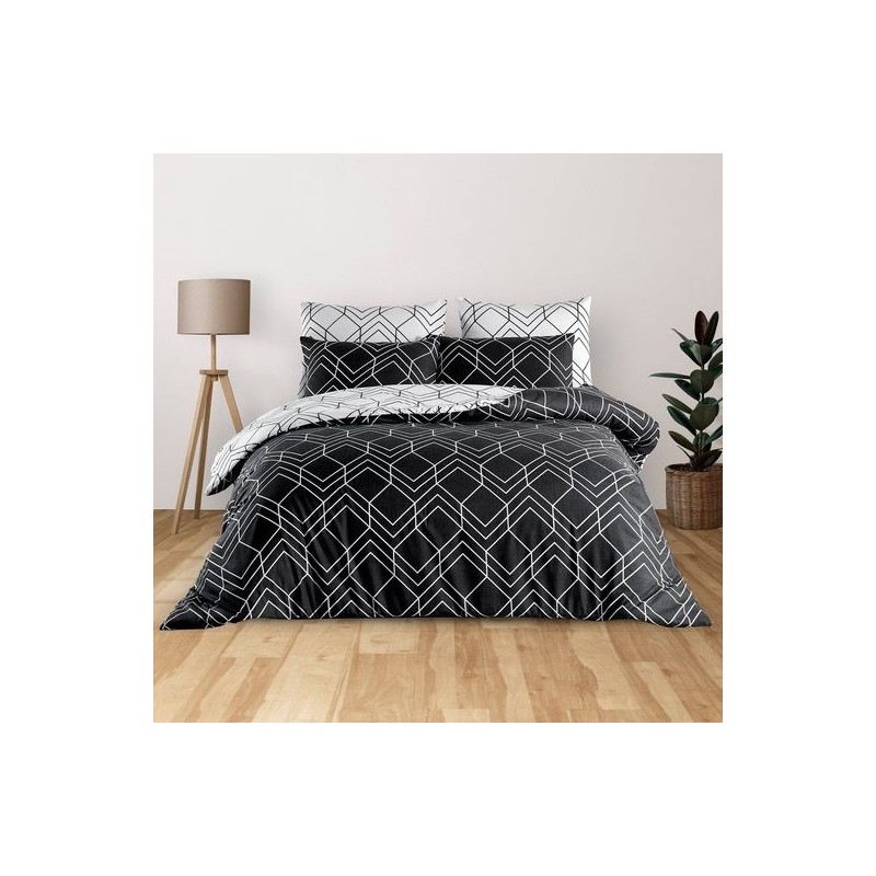 Transformez votre chambre avec le set de literie Komfortec, présentant un design géométrique noir et blanc saisissant. Fabriqué à partir de fibres synthétiques durables, cet ensemble offre un confort exceptionnel et est à la fois antistatique et anti-allergique. Idéal pour une décoration moderne, il comprend une housse de couette et des taies d'oreiller qui améliorent votre expérience de sommeil tout en ajoutant du style à n'importe quel espace.