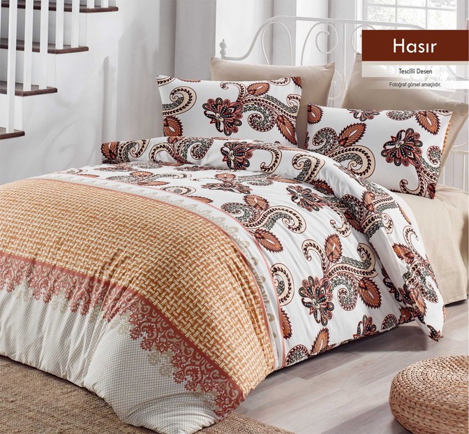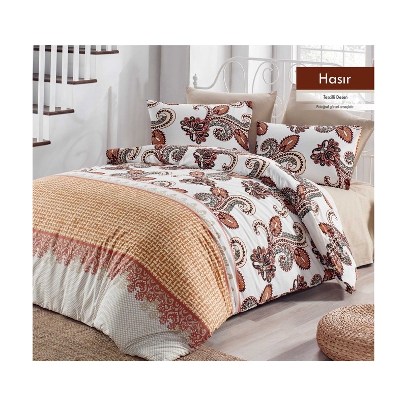 Transformez votre chambre avec le ensemble de literie Hasir, présentant des motifs floraux et paisley vibrants dans des teintes chaudes d'orange, de marron et de noir. Fabriqué en coton doux pour un confort ultime, cet ensemble convient aux lits queen ou king-size standard. Améliorez votre décoration avec son design élégant et ses multiples coussins décoratifs qui ajoutent une touche cohérente à tout espace.