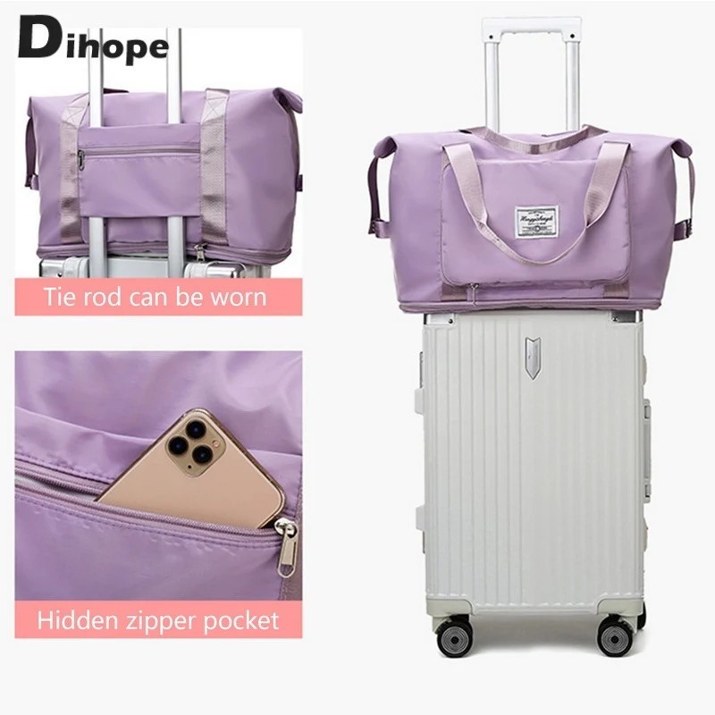 Découvrez nos Sacs de Voyage Pliants de Grande Capacité, des fourre-tout étanches et multifonctionnels, conçus pour répondre à tous vos besoins de transport. Avec une capacité initiale de 35 litres, extensible jusqu'à 50 litres, ce sac est parfait pour les escapades du week-end, les voyages d'affaires ou même une journée au gymnase. Fabriqué en tissu Oxford imperméable, ce sac offre une protection optimale contre l'humidité et les éclaboussures. Ses dimensions généreuses de 50 x 28 x 25 cm permettent un rangement facile d'objets variés tels que vêtements, articles de toilette et équipements sportifs. De plus, il est équipé d'une poche intérieure imperméable haute densité pour séparer vos objets mouillés des autres affaires. Sacs de Voyage Pliants, c'est aussi la polyvalence à son meilleur. Doté de deux poignées robustes et d'une bandoulière ajustable, vous pouvez le porter selon votre convenance : à la main ou sur l'épaule. Sa conception pliable permet un rangement compact lorsqu'il n'est pas utilisé, facilitant ainsi son transport dans vos bagages principaux. Avec ses couleurs élégantes comme le mauve et le vert, ce sac ne fait pas que remplir sa fonction ; il ajoute également une touche moderne à votre style quotidien. Que vous soyez en voyage ou simplement en train de faire des courses, notre sac s'adapte parfaitement à toutes les situations. N'attendez plus pour découvrir cette solution pratique qui allie style et fonctionnalité ! Optez dès aujourd'hui pour nos Sacs de Voyage Pliants de Grande Capacité afin d'améliorer votre expérience quotidienne.
