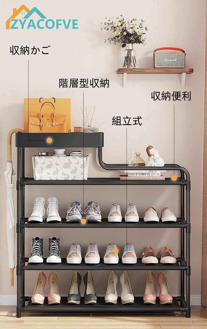 Transformez votre espace avec le ZYACOFVE Porte-chaussures, une solution élégante et moderne pour le rangement des chaussures. Ce rack à chaussures multi-niveaux est conçu pour garder vos chaussures organisées tout en améliorant l'esthétique de n'importe quelle pièce. Avec son style contemporain, il s'intègre parfaitement dans les entrées, les couloirs ou même les petits appartements. Le rangement à chaussures dispose de six étagères spacieuses pouvant accueillir jusqu'à six paires de chaussures, ce qui le rend idéal pour les familles ou les passionnés de chaussures. Chaque étagère est fabriquée à partir de matériaux durables qui garantissent longévité et stabilité, vous permettant de ranger tout, des ballerines aux baskets sans effort. Les dimensions compactes de 26,4 x 30 x 110,4 cm font de cette unité un choix pratique pour les espaces restreints. Une caractéristique remarquable de la boîte à chaussures est son étagère supérieure avec un bord incurvé, parfaite pour exposer des objets décoratifs ou ranger des sacs et des accessoires. De plus, un côté comprend un porte-parapluie, ajoutant de la fonctionnalité à cette pièce élégante. Ce rack à chaussures, vendu individuellement et facile à assembler chez soi, allie forme et fonction de manière harmonieuse. Sa finition noire mate offre non seulement un look minimaliste mais rend également l'entretien simple : il suffit d'essuyer ! Que vous cherchiez à désencombrer votre entrée ou à ajouter une touche d'élégance à votre décor, le ZYACOFVE Porte-chaussures sert d'excellent outil d'organisation sans sacrifier le style. Ajoutez cette solution de rangement polyvalente dès aujourd'hui et profitez d'un espace de vie organisé qui reflète votre goût !