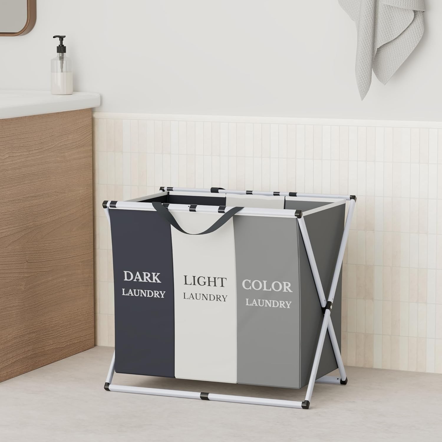 Découvrez le Grand panier à linge pliable, 3 sections, un accessoire essentiel pour une gestion efficace de votre linge. Conçu pour trier et ranger vos vêtements sales, ce panier à linge portable est parfait pour les familles actives. Avec ses dimensions de 64 x 38 x 62 cm, il offre suffisamment d'espace tout en étant compact. Ce panier se distingue par sa structure robuste en métal, recouverte d'un tissu de haute qualité qui résiste aux odeurs désagréables. Grâce à son design intelligent, il comprend trois compartiments distincts : un pour le linge clair, un autre pour le linge foncé, et enfin un compartiment dédié au linge coloré. Cela vous permet de gagner du temps lors du lavage, car votre linge est déjà trié ! L'aspect pratique ne s'arrête pas là. Ce panier à linge est entièrement pliable, ce qui signifie qu'il peut être rangé facilement dans les espaces restreints lorsque vous ne l'utilisez pas. Les poignées solides sur les côtés facilitent son transport vers la machine à laver ou la buanderie. Avec son style moderne et minimaliste, le Grand panier à linge pliable s'intègre parfaitement dans n'importe quelle pièce de votre maison ou appartement. Que ce soit dans une salle de bain chic ou une buanderie fonctionnelle, il ajoute une touche esthétique tout en restant très fonctionnel. N'attendez plus pour améliorer l'organisation de votre espace avec cet indispensable ! Le Grand panier à linge pliable allie praticité et élégance afin que faire la lessive devienne moins pénible.