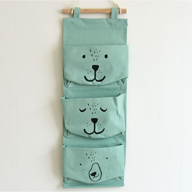 Nous vous présentons notre organisateur de rangement mural délicieux, conçu pour allier fonctionnalité et attrait esthétique. Fabriqué à partir d'un tissu durable, probablement un mélange de coton, cet organisateur offre à la fois flexibilité et facilité d'entretien, ce qui en fait un choix idéal pour les foyers occupés. La douce couleur vert menthe offre une apparence apaisante et fraîche qui complète divers styles d'intérieur. Son design ludique présente trois poches spacieuses ornées de charmants visages d'animaux, avec un motif d'ours en noir. Cette touche fantaisiste le rend parfait pour les chambres d'enfants, les salles de jeux ou tout espace créatif. La structure globale est orientée verticalement, garantissant que chaque poche est suffisamment grande pour contenir de petits objets tels que des jouets, des livres ou des fournitures de bricolage. Les poches rectangulaires affichent des bords arrondis qui contribuent à leur apparence amicale tout en améliorant la sécurité dans des environnements actifs. Un bâton en bois en haut sert de mécanisme de suspension, sécurisé par de solides boucles en tissu pour une installation facile sur les murs ou les portes. Ce design réfléchi vous permet de maximiser votre espace tout en gardant tout organisé et à portée de main. Les éléments distinctifs de cet organisateur incluent des caractéristiques simples mais expressives sur les visages d'animaux—yeux, nez et lignes de bouche—qui ajoutent du charme sans surcharger votre décoration. Non seulement ce produit sert de solution pratique pour ranger de petits objets, mais il agit également comme un élément décoratif accrocheur dans n'importe quelle pièce. Ce organisateur de rangement mural est plus qu'une simple fonctionnalité, c'est une invitation à la créativité et à l'organisation. Transformez votre espace aujourd'hui avec cet ajout élégant qui apporte joie et ordre dans chaque coin !