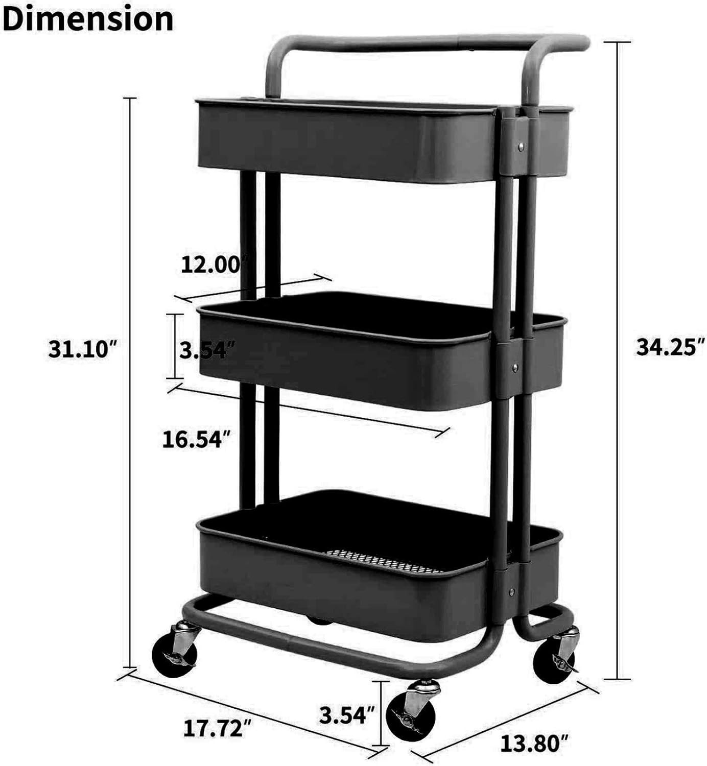 Découvrez le chariot polyvalent, Chambre À Coucher Chariot À Roulettes Pratique 3-Tier Chariot Roulant Avec Panier En Métal Panier Multi-Usine. Ce chariot en métal durable dispose de trois paniers ouverts pour un rangement et une organisation efficaces. Idéal pour les chambres, les cuisines ou les bureaux, sa finition noire mate élégante et ses roues à roulement fluide garantissent à la fois style et fonctionnalité dans n'importe quel espace.