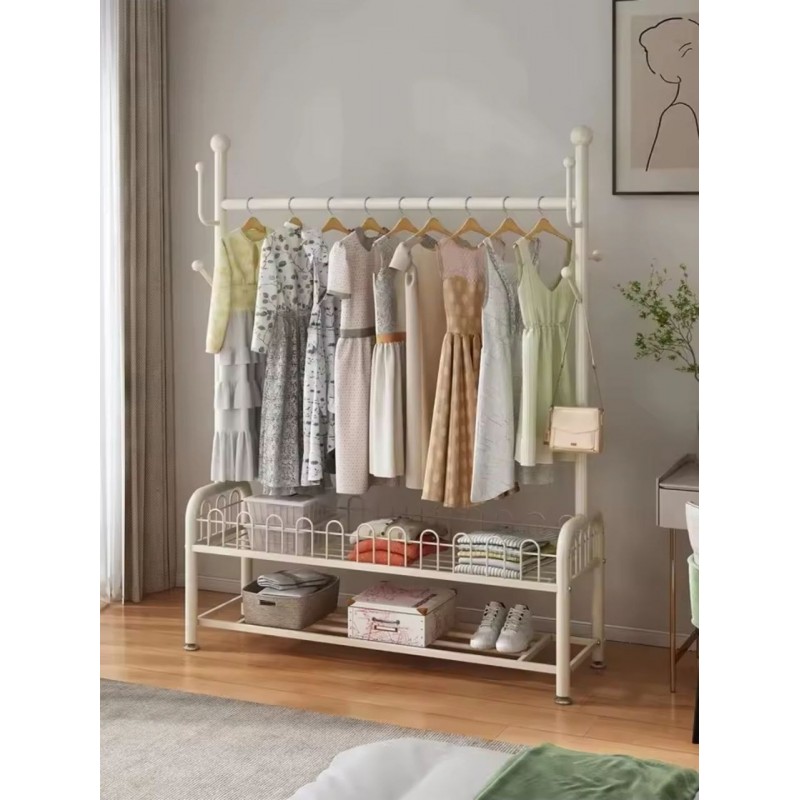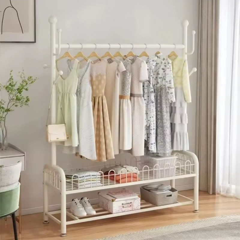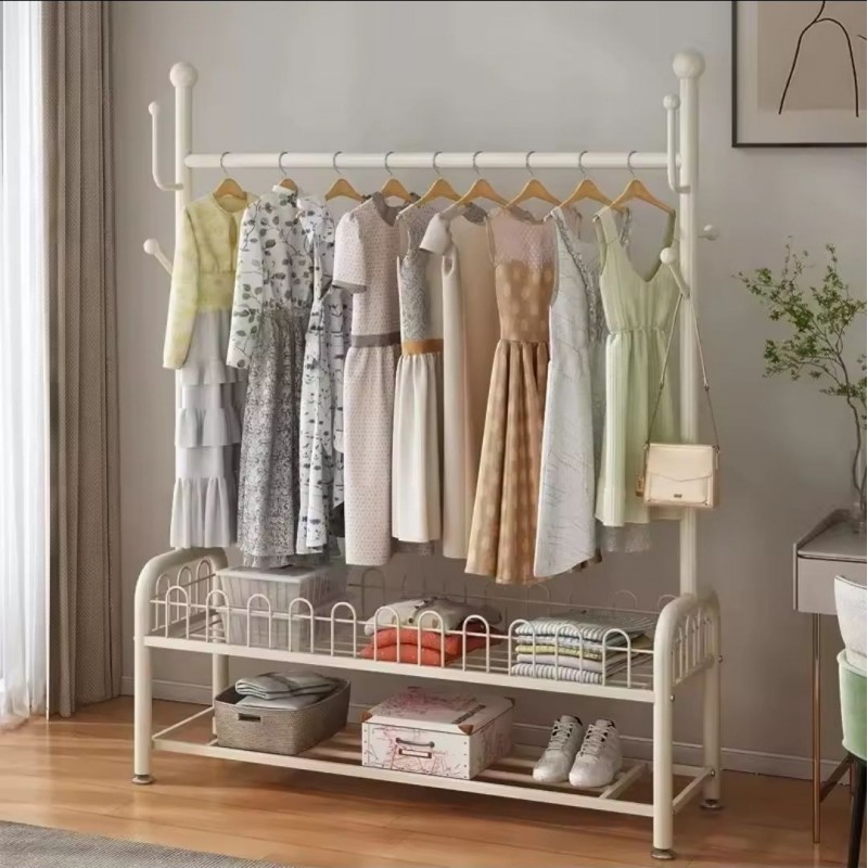 Découvrez notre élégant portant à vêtements, l'ajout parfait à votre maison qui allie élégance et fonctionnalité. Conçu pour ceux qui apprécient une esthétique moderne, ce portant est fabriqué en métal de haute qualité, de couleur claire, avec une finition mate élégante qui rehausse n'importe quel espace. La structure générale du portant présente un design haut et minimaliste, idéal pour exposer vos vêtements préférés. Une barre horizontale en haut vous permet de suspendre divers robes à l'aide de cintres en bois, ajoutant une touche naturelle à votre décoration. Avec une gamme de couleurs et de styles en exposition—des pastels doux comme le vert menthe et le beige clair aux motifs floraux vibrants—ce portant à vêtements non seulement organise mais met également en valeur votre garde-robe de manière magnifique. En dessous de la zone de suspension se trouve une étagère inférieure équipée d'une jolie rampe courbée qui ajoute du charme tout en offrant des solutions de rangement pratiques. Cette étagère est parfaite pour empiler soigneusement des vêtements pliés ou des accessoires, garantissant que tout ce dont vous avez besoin est à portée de main. De plus, elle accueille facilement des chaussures ; imaginez placer votre paire de baskets blanches préférées juste là où vous pouvez les voir ! L'atmosphère accueillante créée par ce portant à vêtements le rend adapté à toute chambre ou zone de dressing. Son design chic s'intègre parfaitement dans divers styles d'intérieur tels que contemporain, scandinave ou inspiré vintage. Que vous organisiez des tenues pour la semaine ou que vous mettiez en avant des tendances vestimentaires saisonnières, ce meuble polyvalent sert à la fois d'affichage élégant et de solution de rangement essentielle. Transformez votre espace de vie aujourd'hui avec notre magnifique portant à vêtements, où le style rencontre la praticité dans un bel ensemble !