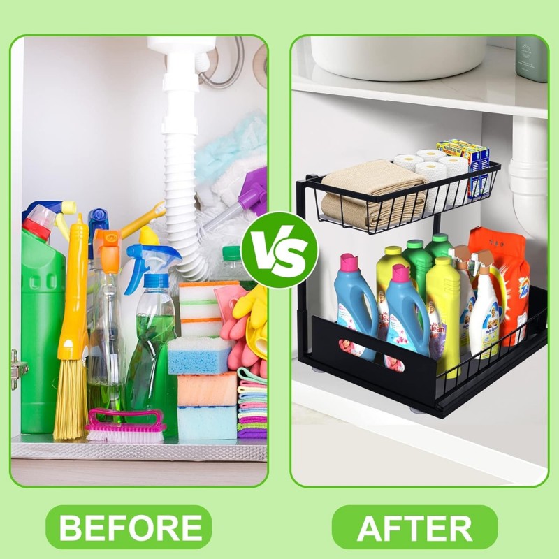 Transformez le rangement de votre cuisine ou de votre salle de bain avec cet organisateur sous l'évier efficace. Conçu avec deux paniers coulissants spacieux, il offre une solution intelligente pour ranger les produits de nettoyage, les articles de toilette ou les essentiels de cuisine. Sa construction en métal robuste garantit durabilité, tandis que son design moderne complète tout décor. Facile à installer et à ajuster, cet organisateur rend l'accès à vos objets un jeu d'enfant, gardant votre espace propre et sans encombrement.