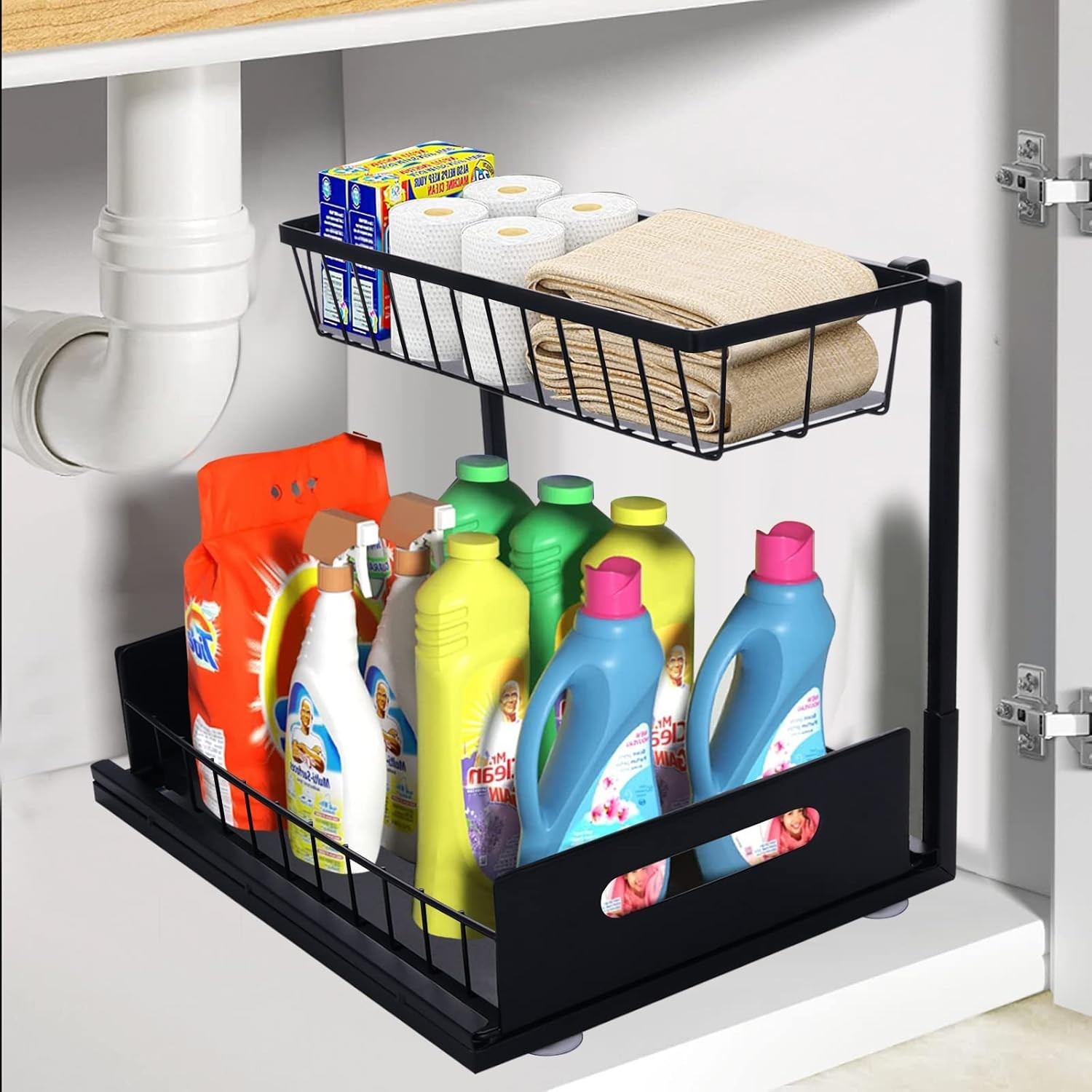 Organisateur de rangement sous l'évier avec paniers coulissants