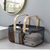 Découvrez notre panier de rangement moderne, conçu avec un corps en treillis métallique noir durable et des poignées en bois élégantes. Ce panier polyvalent est parfait pour organiser les articles de toilette dans la salle de bain, les magazines dans le salon ou les provisions dans la cuisine. Améliorez votre espace avec cette solution fonctionnelle et chic qui complète sans effort tout style de décoration.