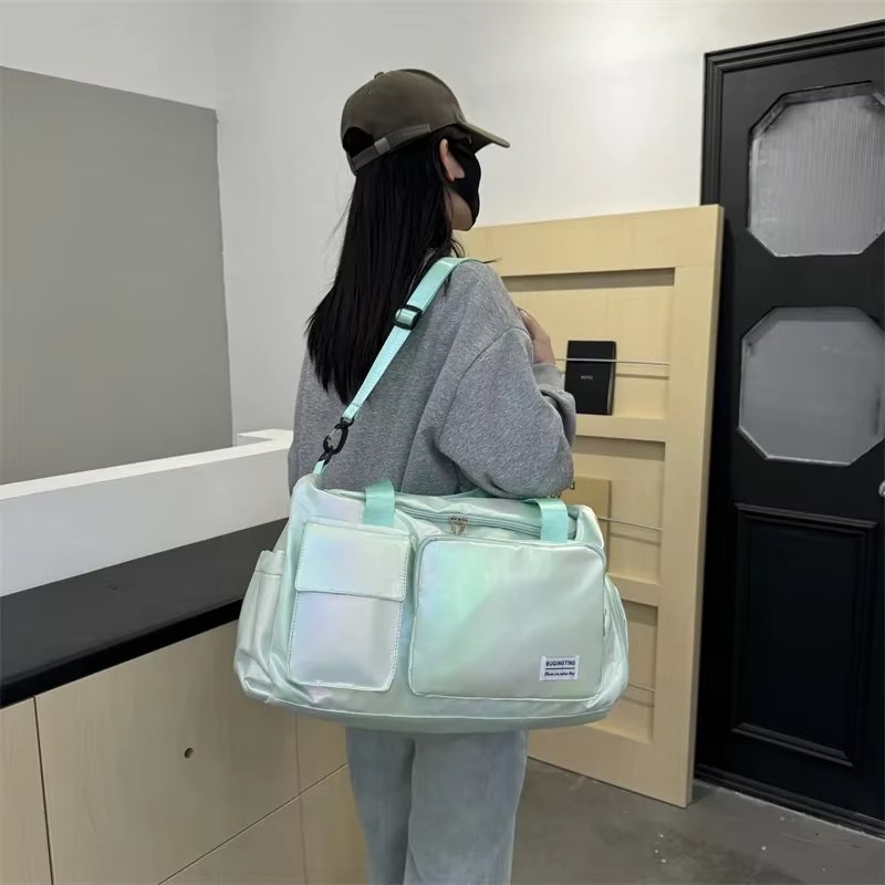 Découvrez le mélange parfait de style et de fonctionnalité avec notre sac de sport irisé. Doté d'un design léger et durable dans un magnifique vert menthe, ce sac de taille moyenne est idéal pour les visites à la salle de sport ou les escapades du week-end. Avec plusieurs poches et des sangles réglables, il offre à la fois commodité et polyvalence pour le voyageur moderne.