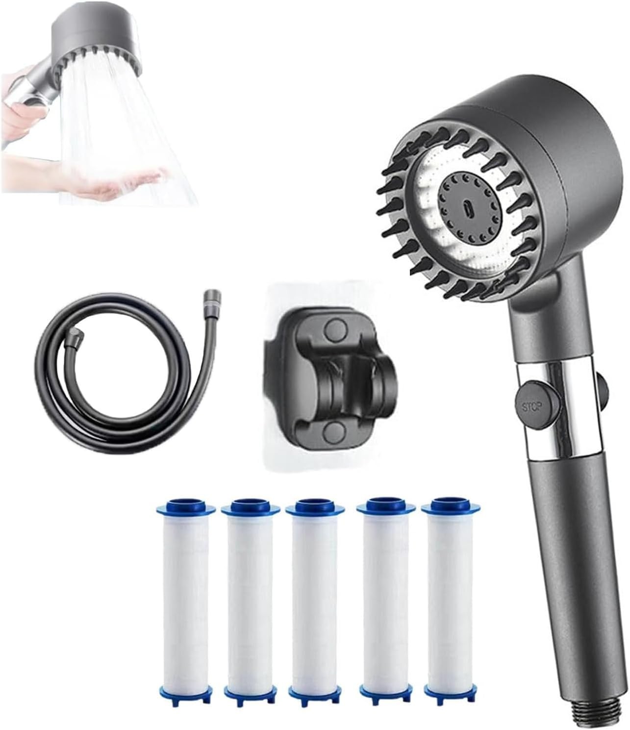 D : 1 x douche de massage + 1 x base de fixation + 1 x tube de 1,5 m + 5 x filtre en coton