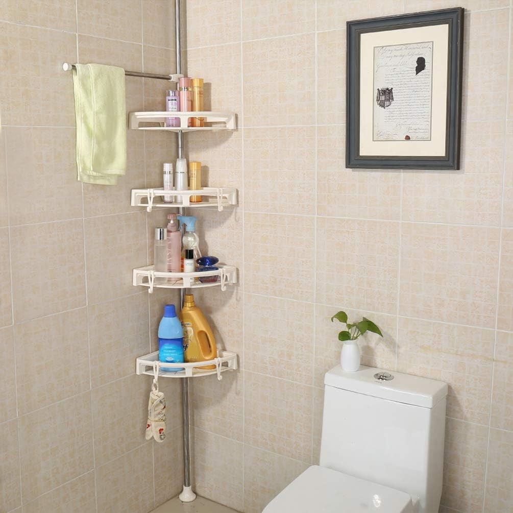 Matériau: Tuyau composite en acier inoxydable /ABS/ PP Couleur: Ivoire Dimension du produit Environ: (Applicable 2 hauteurs) 185-240cm/6.06 ft - 7.87ft 255-310cm/8.36 ft - 10.17ft Aucun outil n'est nécessaire pour l'installation, pas besoin de percer, pas de dommages à votre mur décoratif et l'utilisation complète de l'espace d'angle vertical Deux gammes de taille de hauteur sont rétractables et peuvent être ajustés en fonction de la taille de votre maison, adapté pour baignoire et salle de bains plafond au sol. Les plateaux avec garde-corps pour éviter que l'essentiel de la salle de bain ne glisse vers le bas, et avec 6 crochets pour accrocher de petits objets, tels que boule de bain, serviette, brosse, etc. 4-Tier plastique Grands plateaux pour la tenue de l'essentiel de douche, y compris le shampooing, conditionneur, rasoirs, débarbouillettes, savon, jouet de bain pour enfants, etc. Avec une barre de serviette, peut être tourné de 360 degrés pour accrocher facilement des serviettes ou des vêtements.Fixez la position des quatre plateaux avec l'anneau en caoutchouc, chaque plateau a des trous de vidange pour le drainage facile; tapis antidérapant de TPE sur les deux extrémités. Pakcage Inclus: 1 x Cabine de douche.