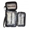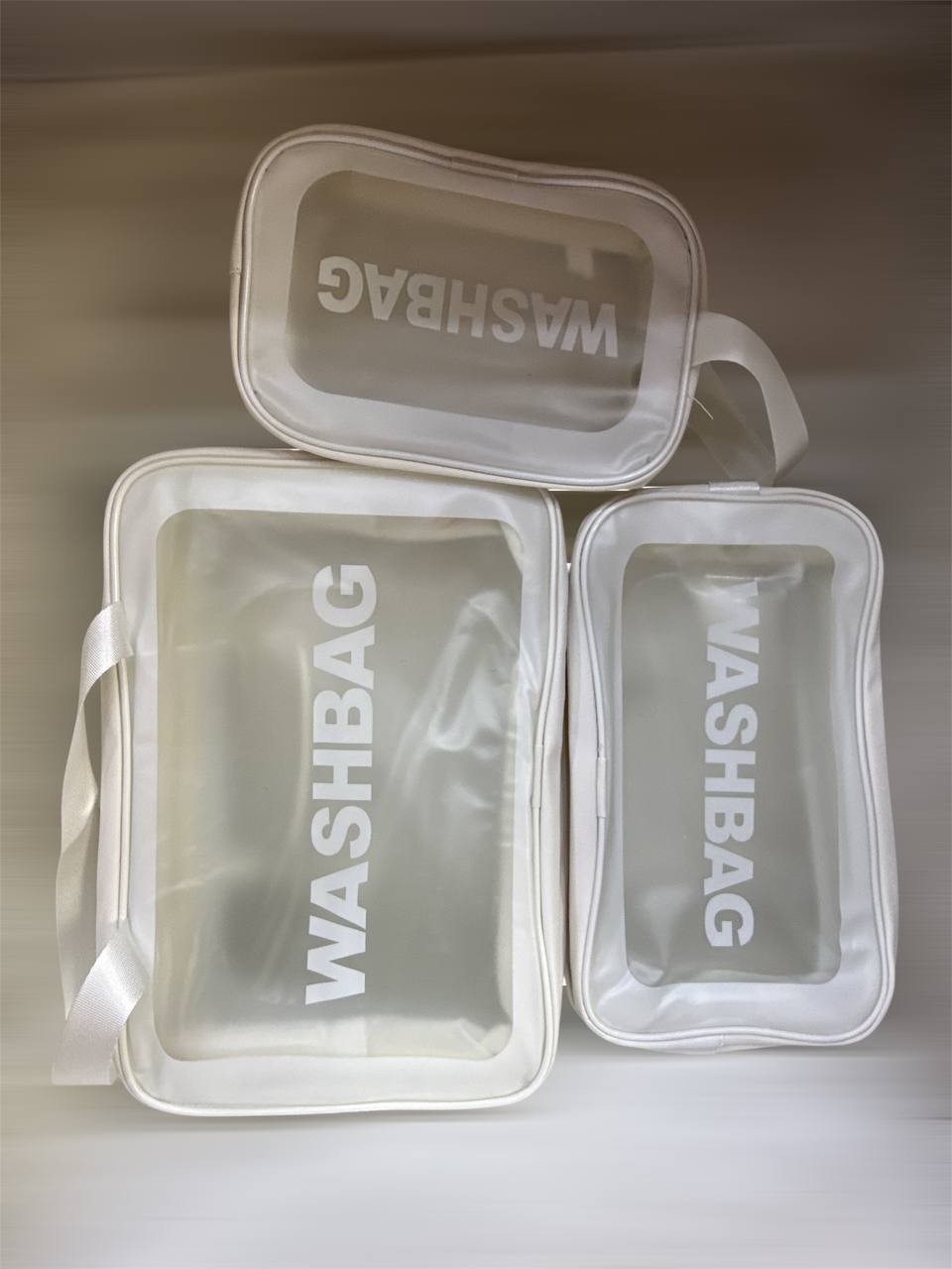 Nous vous présentons notre ensemble premium de trousses de toilette de voyage, la solution ultime pour organiser vos articles de toilette et vos effets personnels en déplacement. Fabriquées à partir d'un matériau léger et durable avec une finition brillante, ces trousses sont non seulement élégantes mais aussi résistantes à l'eau, garantissant que vos essentiels restent protégés pendant vos voyages. L'ensemble comprend trois trousses de tailles variées, chacune conçue pour répondre à des besoins différents. La plus grande trousse offre une capacité suffisante pour des articles plus volumineux comme des bouteilles ou des contenants, tandis que les trousses moyenne et petite sont parfaites pour les petits articles de toilette. Chaque trousse présente une forme rectangulaire élégante avec des coins légèrement arrondis, ajoutant à son esthétique moderne. Une caractéristique remarquable de nos trousses de toilette de voyage est leurs compartiments transparents. Ce design vous permet d'identifier rapidement le contenu sans fouiller dans vos affaires, rendant le rangement et le déballage très faciles. Chaque trousse est équipée de fermetures éclair lisses qui offrent un accès facile et un rangement sécurisé pour tous vos essentiels. La plus grande trousse comprend même une sangle robuste sur un côté, permettant de l'utiliser comme option de transport autonome si nécessaire. Que vous voyagiez pour affaires ou pour le loisir, ces trousses de toilette sont un ajout essentiel à votre collection d'accessoires de voyage. Avec le texte en gras "WASHBAG" affiché en caractères modernes sans empattement sur l'extérieur noir, ce produit allie fonctionnalité et style. Découvrez une organisation sans effort et une commodité pendant vos voyages avec notre ensemble polyvalent de trousses de toilette de voyage—votre compagnon idéal pour maintenir vos soins personnels et votre hygiène en déplacement !