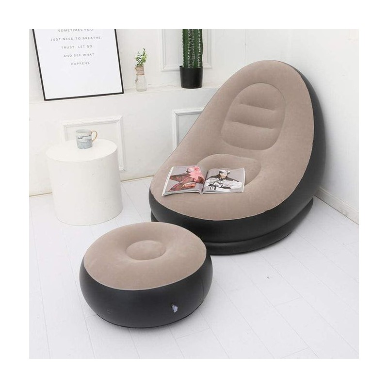 Inflatable Lazy Sofa, Flocking Inflatable Folding Chair with Pedal, for Indoor Outdoor Reading and Movie Watching