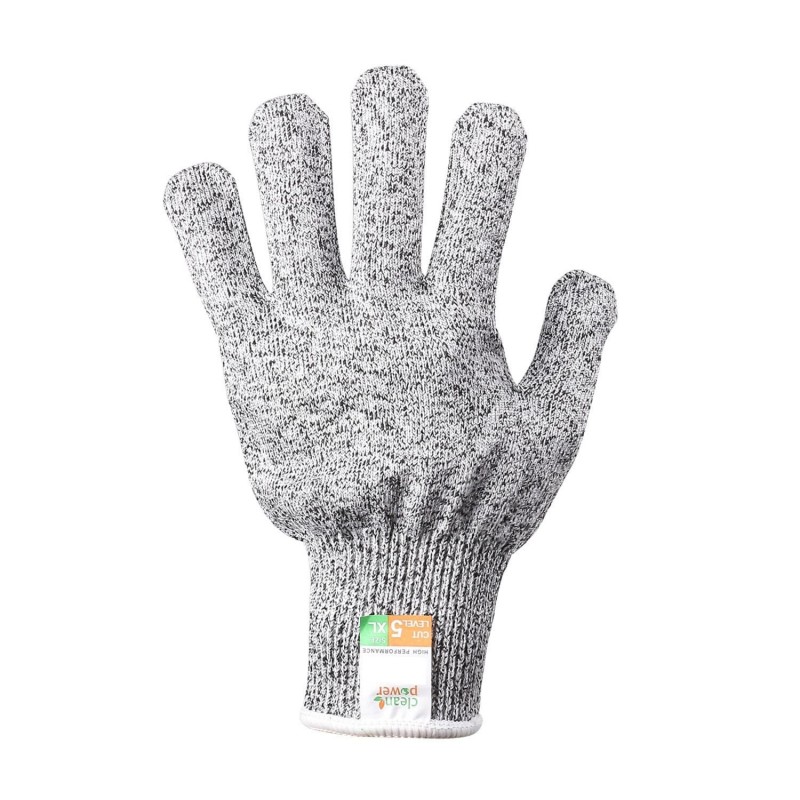 La couleur gris clair avec un motif speckled apporte une touche moderne tout en restant discrète. La manchette ribbed élastique garantit un ajustement parfait au poignet, empêchant ainsi les gants de glisser pendant l'utilisation. De plus, le niveau de protection est clairement indiqué sur l'étiquette : Niveau de coupe 5, ce qui signifie que ces gants offrent un haut degré de sécurité contre les objets tranchants.
