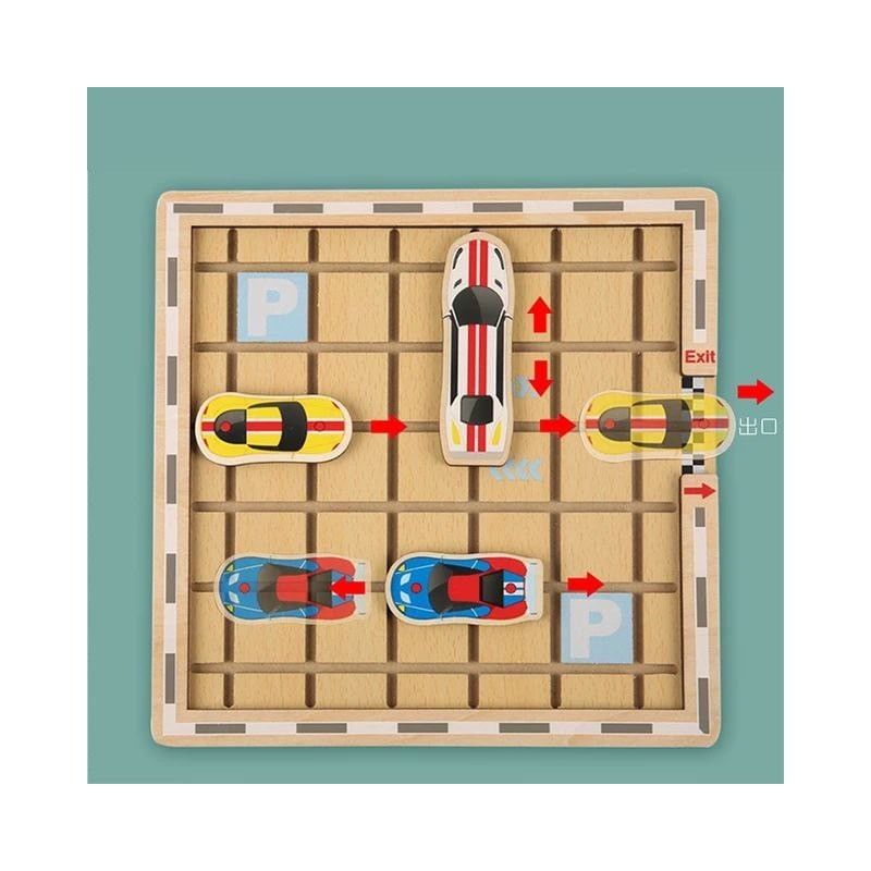 Puzzle en bois Bloc Coulissant, Klotski Bande Dessinée Voiture Puzzle, Tige Jouets Cadeau pour les Enfants Garçons