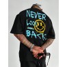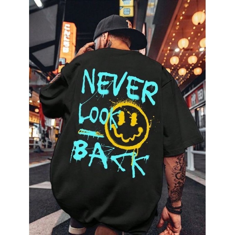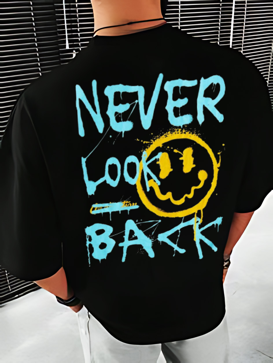 Découvrez le T-shirt en coton urbain Unique et Ultra Confortable Never Look Back, disponible en tailles S à XXL. Fabriqué en coton doux et respirant, ce tee-shirt surdimensionné présente des graphismes turquoise saisissants et un visage souriant ludique. Parfait pour des sorties décontractées ou en superposition, il allie style et confort pour un look urbain tendance qui résonne avec l'esprit jeune.
