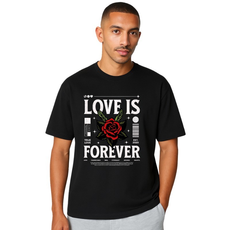 Exprimez votre amour éternel avec ce t-shirt graphique 'L'amour est éternel'. Parfait pour des sorties décontractées ou une journée tranquille à la maison.